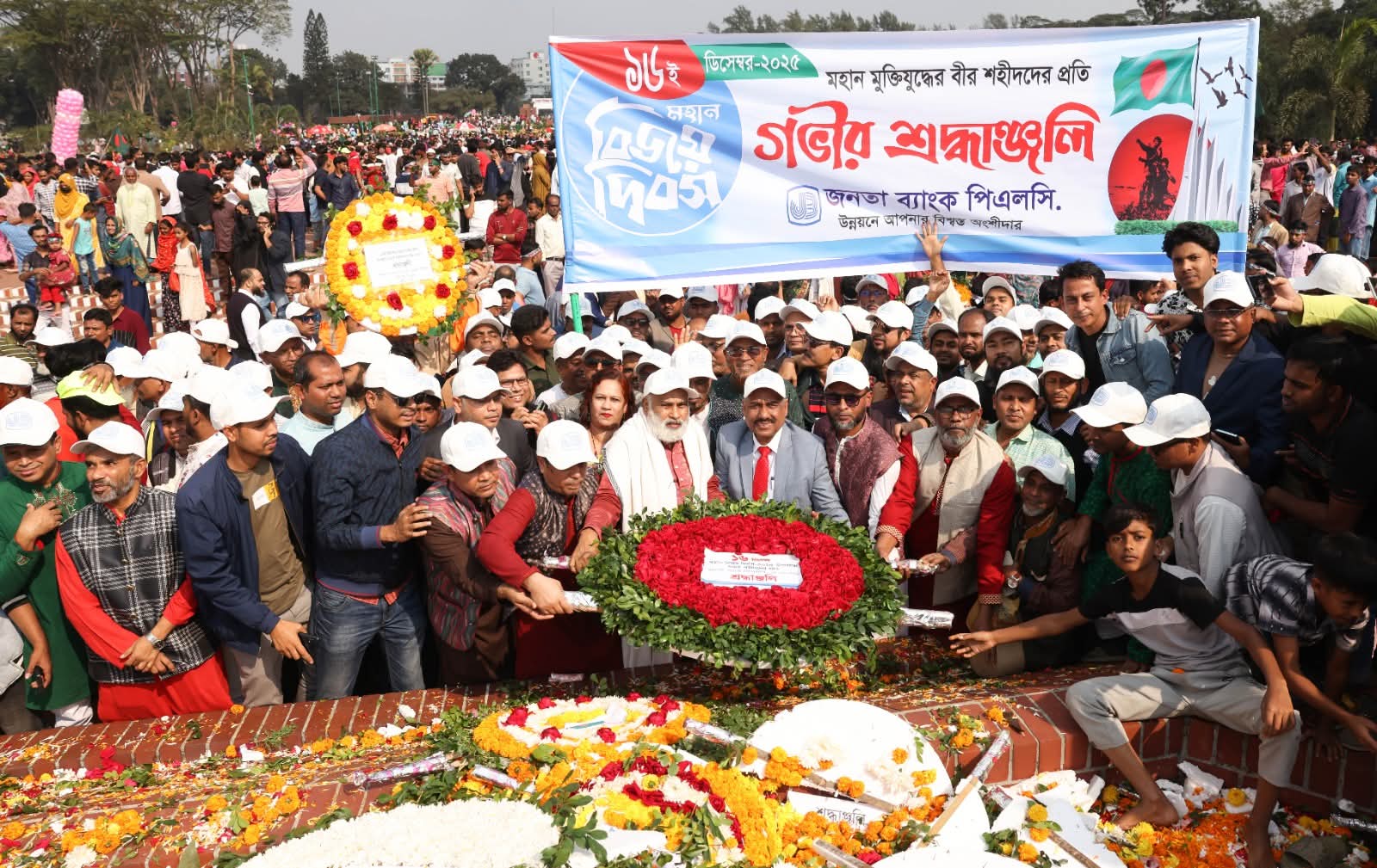 মহান বিজয় দিবস উদযাপন উপলক্ষ্যে জনতা ব্যাংক পিএলসির ব্যবস্থাপনা পরিচালক মোঃ মজিবর রহমানের নেতৃত্বে সাভারস্থ জাতীয় স্মৃতিসৌধে পুষ্পস্তবক অর্পণ করা হয়। এর আগে সকালে ব্যাংকের প্রধান কার্যালয়ে জাতীয় পতাকা উত্তোলন করা হয়। এ সময় ব্যাংকের পরিচালক ড. মোঃ আব্দুস সবূর, আব্দুল মজিদ শেখ, আব্দুল আউয়াল সরকার ও মোঃ ওবায়দুল হকসহ উর্ধ্বতন নির্বাহীবৃন্দসহ, জাতীয়তাবাদী অফিসার সংগঠনের নেতৃবৃন্দ ও জাতীয়তাবাদী কর্মচারী ইউনিয়নের নেতৃবৃন্দ এবং সর্ব স্তরের কর্মকর্তা-কর্মচারীবৃন্দ উপস্থিত ছিলেন।