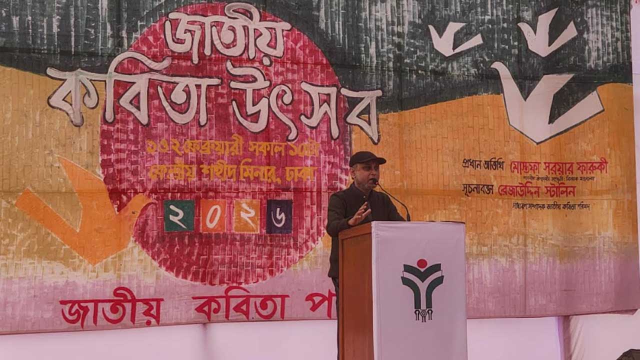 রোববার (১ ফেব্রুয়ারি) দুপুরে ঢাকার কেন্দ্রীয় শহীদ মিনারে ‘জাতীয় কবিতা উৎসব ২০২৬’-এর উদ্বোধনী অনুষ্ঠানে প্রধান অতিথির বক্তব্যে তিনি এ কথা বলেন।