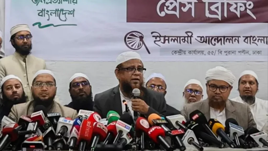 জামায়াতে ইসলামী ইসলামের আদর্শ থেকে সরে যাওয়ায় তাদের নেতৃত্বাধীন রাজনৈতিক ঐক্য থেকে বেরিয়ে আসার সিদ্ধান্ত নিয়েছে ইসলামী আন্দোলন বাংলাদেশ—এমন মন্তব্য করেছেন দলটির যুগ্ম মহাসচিব ও মুখপাত্র গাজী আতাউর রহমান। শুক্রবার (১৬ জানুয়ারি) বিকেলে রাজধানীর পুরানা পল্টনে ইসলামী আন্দোলনের কেন্দ্রীয় কার্যালয়ে আয়োজিত সংবাদ সম্মেলনে তিনি এসব কথা বলেন। গাজী আতাউর রহমান বলেন, “খ্রিষ্টান সম্প্রদায়ের সঙ্গে বৈঠকে জামায়াতে ইসলামী প্রচলিত আইনে দেশ পরিচালনার প্রতিশ্রুতি দিয়েছে। অথচ ইসলামী আন্দোলন শরিয়াহ অনুযায়ী রাষ্ট্র পরিচালনার লক্ষ্য নিয়ে রাজনীতি করে। এই অবস্থান আমাদের সঙ্গে সরাসরি সাংঘর্ষিক।”