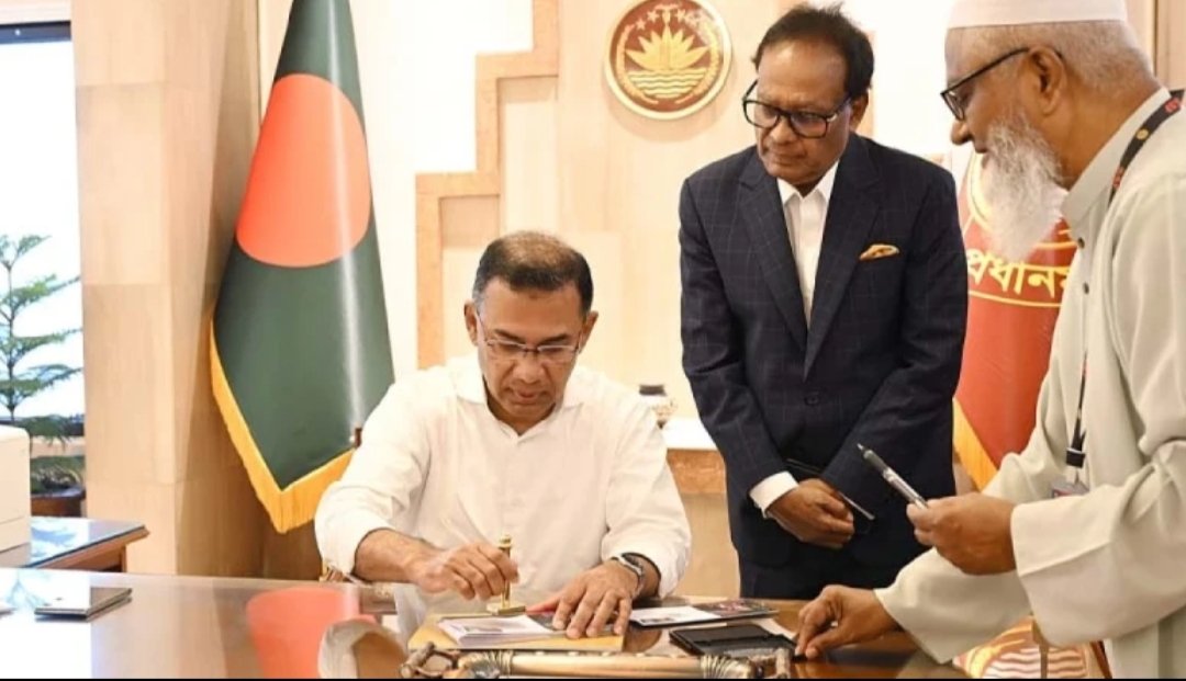গণপ্রজাতন্ত্রী বাংলাদেশ সরকারের প্রধানমন্ত্রী তারেক রহমান প্রথমবারের মতো রাজধানীর তেজগাঁওয়ে প্রধানমন্ত্রীর কার্যালয়ে এসে অফিস করছেন। আজ শনিবার সকাল ১০টা ১০ মিনিটে কার্যালয়ে প্রবেশ করলে মুখ্য সচিব এ বি এম আব্দুস সাত্তার ও অতিরিক্ত প্রেস সচিব আতিকুর রহমান রুমন তাকে স্বাগত জানান। প্রধানমন্ত্রী নিজের কার্যালয়ের মূল ভবনে প্রবেশের আগে সাবেক প্রধানমন্ত্রী বেগম খালেদা জিয়া সরকারের সময় দায়িত্বপালনকারী কর্মকর্তা-কর্মচারীদের সঙ্গে কুশলাদি বিনিময় করেন। একই সঙ্গে কার্যালয়ের পুরনো অনেক কর্মকর্তা ও কর্মচারীর নাম ধরে কাছে ডেকে কথা বলেন তারেক রহমান। এ সময় সংশ্লিষ্টরা দেশের প্রধানমন্ত্রীকে এতো কাছাকাছি পেয়ে আবেগাপ্লুত হন। এর আগে প্রধানমন্ত্রী একটি স্বর্ণচাঁপা ফুলের চারা কার্যালয় চত্বরে রোপন করেন এবং মহান আল্লাহপাকের কাছে শুকরিয়া আদায় করে বিশেষ মোনাজাত করেন। এ সময় প্রধানমন্ত্রীর প্রতিরক্ষা উপদেষ্টা ব্রিগেডিয়ার জেনারেল ড. একেএম শামছুল ইসলাম, পিএসসি, জি (অব.)-সহ অন্যান্য কর্মকর্তারা উপস্থিত ছিলেন। এর পর মহান শহীদ দিবস ও আন্তর্জাতিক মাতৃভাষা দিবস-২০২৬ উপলক্ষে ডাক টিকিট উন্মোচন করেন প্রধানমন্ত্রী তারেক রহমান।এ সময় ডাক, টেলিযোগাযোগ ও প্রযুক্তিবিষয়ক মন্ত্রী ফকির মাহবুব আনাম, সচিব আব্দুন নাসের খানসহ আরও কয়েকজন উপস্থিত ছিলেন। প্রসঙ্গত, গত ১৭ ফেব্রুয়ারি প্রধানমন্ত্রী হিসেবে শপথ নেন তারেক রহমান। এরপর প্রধানমন্ত্রী সচিবালয়ে তার দপ্তরে দুইদিন অফিস করেন।