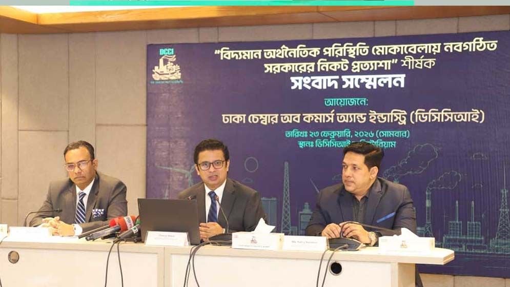 ‘বিদ্যমান অর্থনৈতিক পরিস্থিতি মোকাবিলায় নবগঠিত সরকারের কাছে প্রত্যাশা’ শিরোনামে সংবাদ সম্মেলনটি আয়োজন করে ডিসিসিআই।